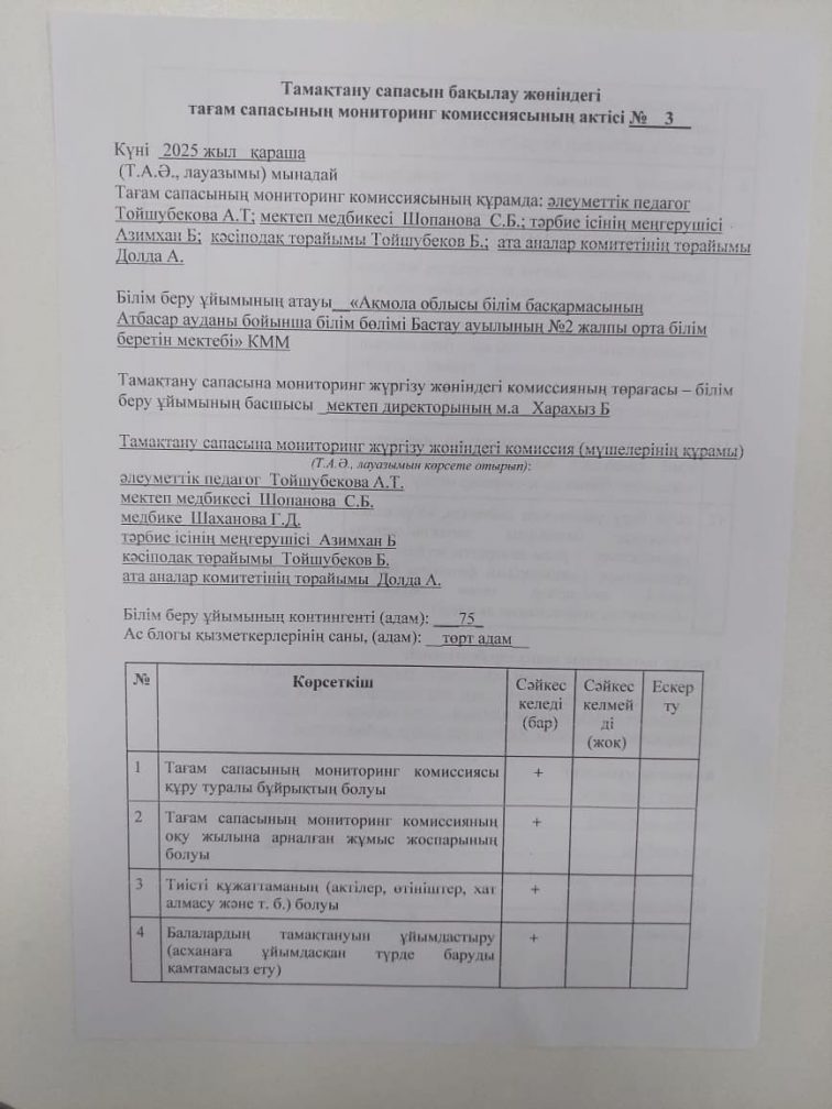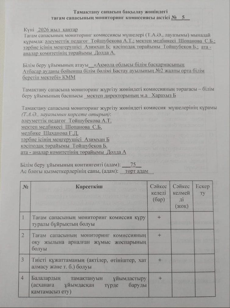 «Ақмола облысы білім басқармасының Атбасар ауданы бойынша білім бөлімі Бастау ауылының № 2 жалпы орта білім беретін мектебі» коммуналдық мемлекеттік мекемесіне
