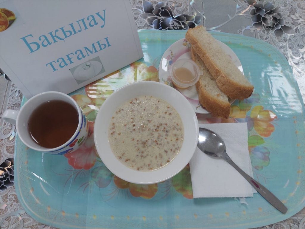 Күнделікті бақылау тағамдары шығарылады: сүтті қарақұмық ботқасы, бал, шәй, нан.