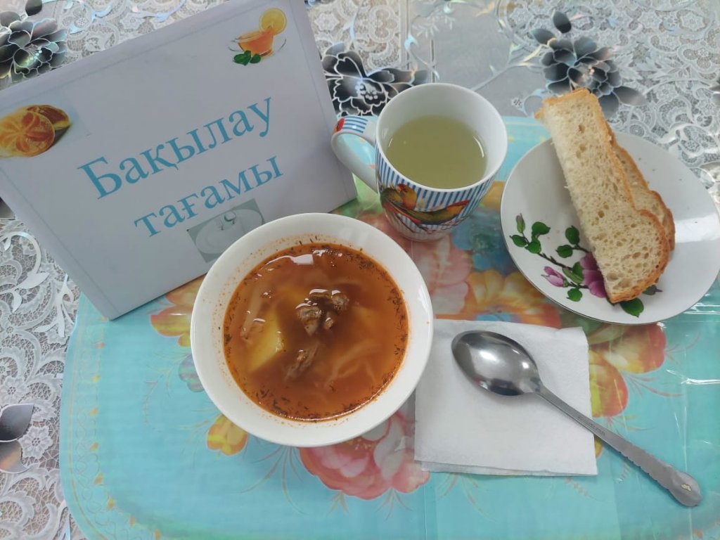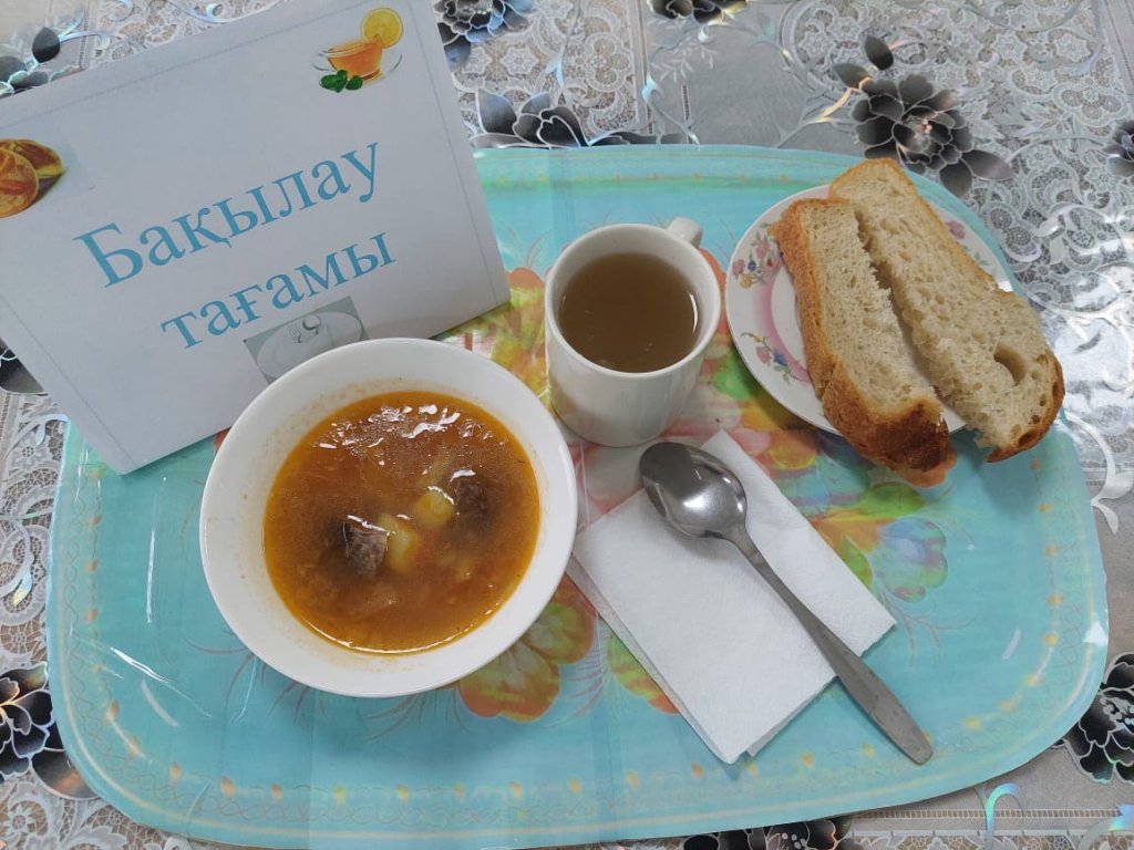 Күнделікті бақылау тағамдары шығарылады: борщ, шәй, нан.