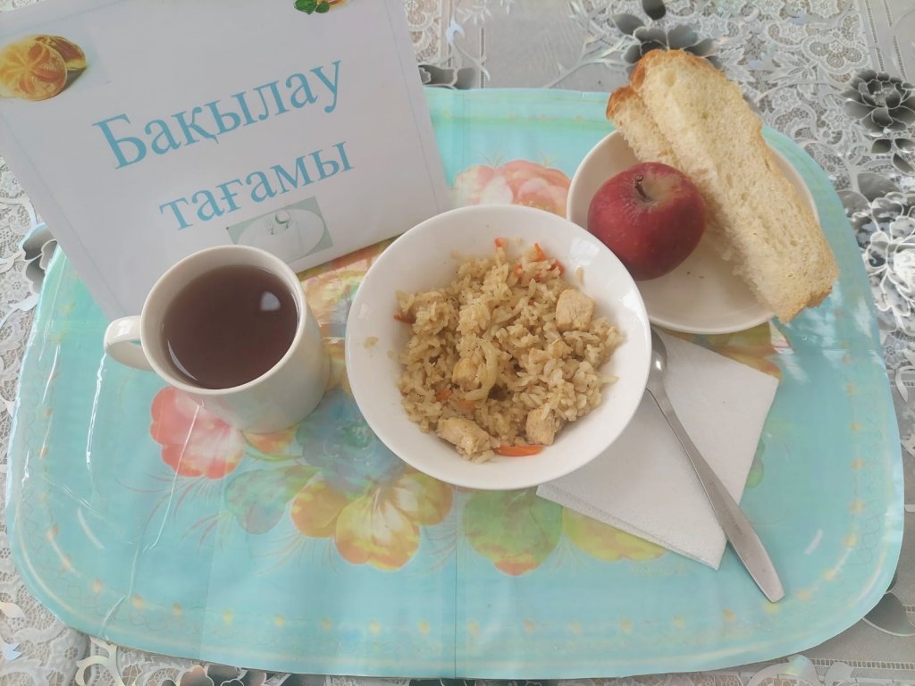 Сегодня в меню: плов, чай без молока, яблоко, хлеб.