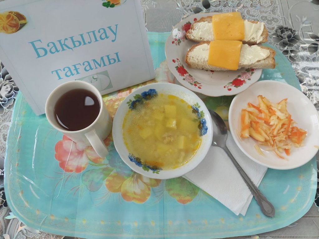 Сегодня в меню: рыбный суп/уха/, бутерброд с маслом и сыром, компот из сухофруктов, салат капустный с яблоком.