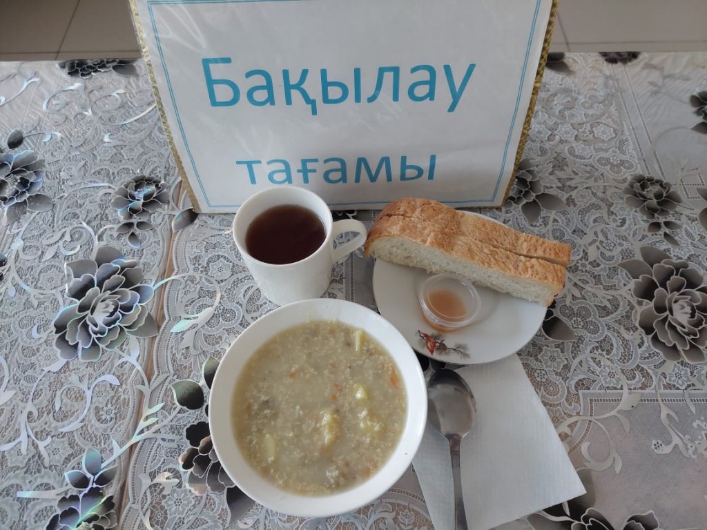 Күнделікті бақылау тағамдары шығарылады: бидай ботқасы, шәй, сары май, нан.