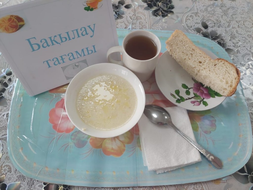 Күнделікті бақылау тағамдары шығарылады: тары ботқасы, шәй, нан.