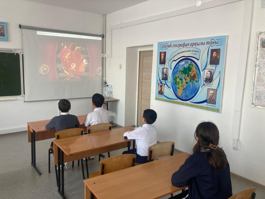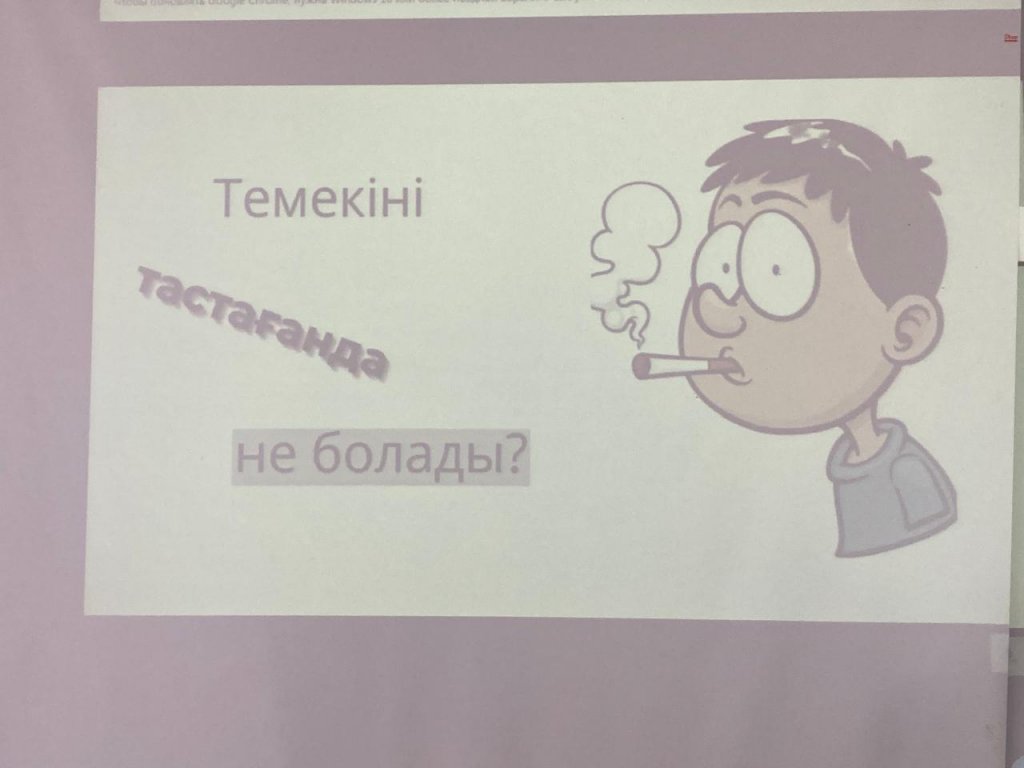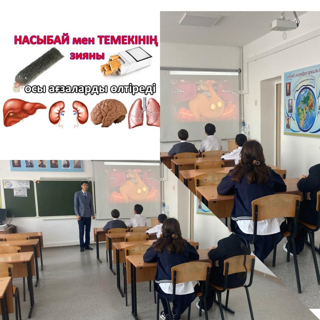 Шара барысында мұғалім темекі түтіні мен насыбайдың тыныс алу жүйесіне, жүрек пен асқазанға тигізетін зияны туралы әңгімеледі. Оқушылар бейнеролик көріп, пікір бөлісті және «Денсаулығым — өз қолымда» тақырыбында ойларын айтты.