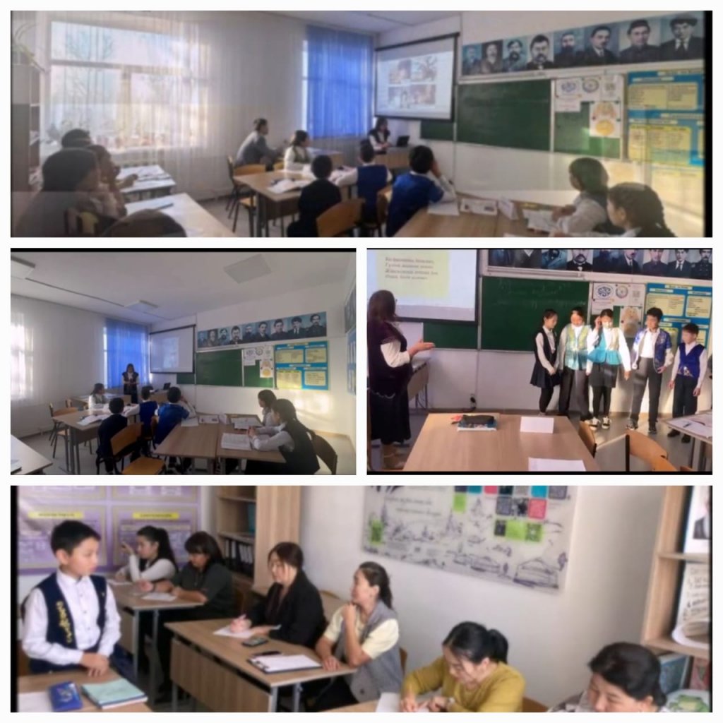 ✨ Сабақта ынтымақтастық атмосферасы орнап, оқушылар асықтар арқылы "Абай ауылы" және "Құнанбай ауылы" топтарына бөлінді. Сабақтың мақсаты таныстырылып, үй тапсырмасы ретінде оқушылар Абай өлеңдерін жатқа, мәнерлеп оқыды.