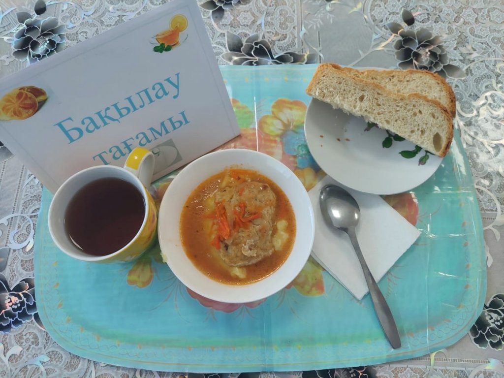 Күнделікті бақылау тағамдары шығарылады: гарнир: езілген картоп, тауық етінен жасалған котлет, шәй, нан.