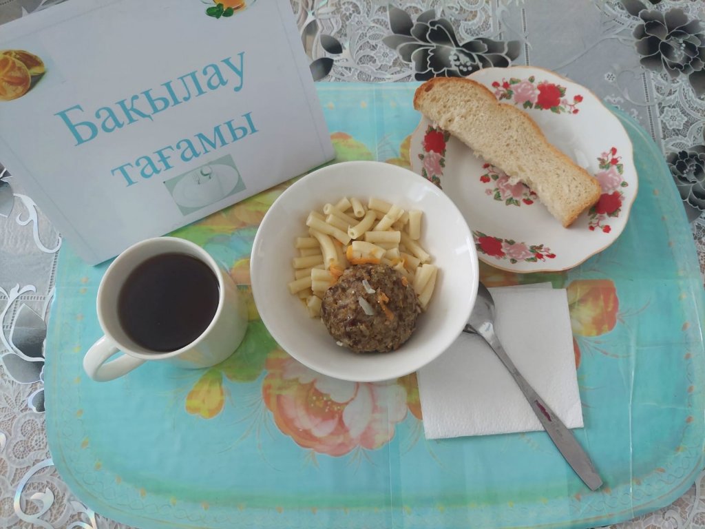 Күнделікті бақылау тағамдары шығарылады: гарнир: макарондар, етті кірпілер, кептірілген жеміс жидектен жасалған компот, нан.