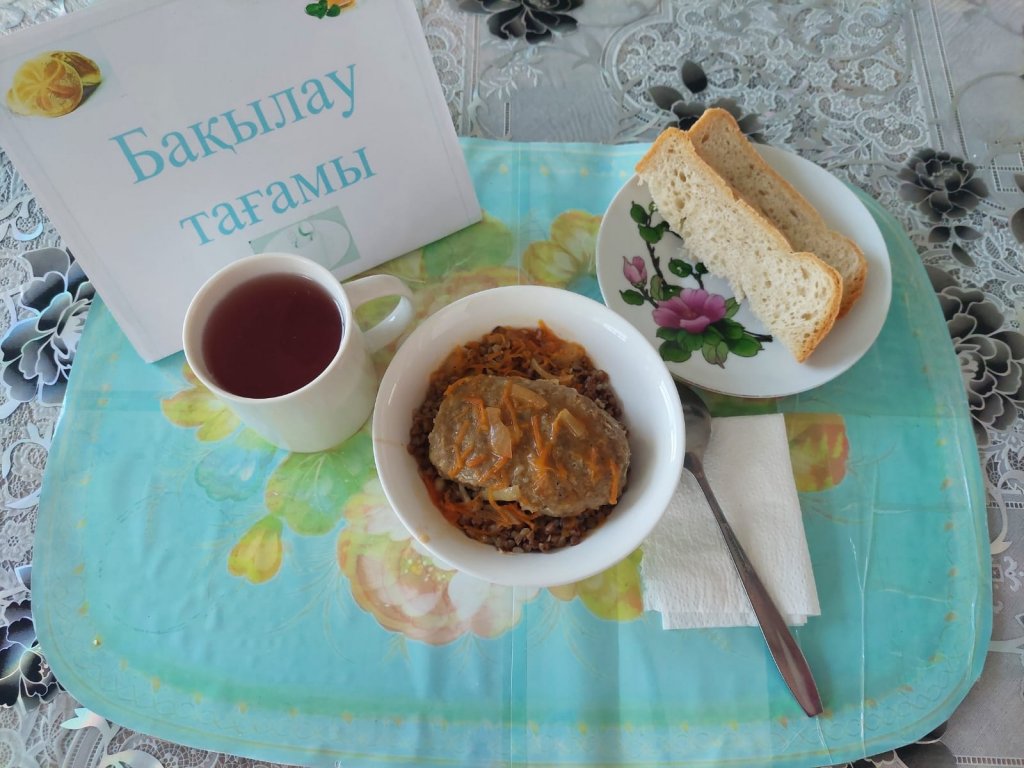 Күнделікті бақылау тағамдары шығарылады: гарнир: қарақұмық, балық котлет, кілегей тұздығы, алмадан жасалған компот, нан.